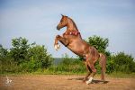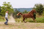 Der eindrucksvolle Fuchs mit dem raumgreifenden Schritt ist ein hochsensibles Wesen. Trägt er ein Kind auf seinem Rücken, bewegt er sich besonders behutsam. Als seine Halbschwester und equine Lebensbegleiterin Kasiallah stirbt, trauert Nazeel lange auf herzzerreißende Weise.